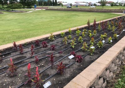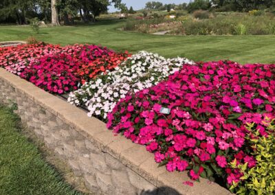The raised beds on the southeastern corner of the garden contain the NDSU annual flower trials. The trials showcase the latest flower cultivars to hit the market. As a comparison, old favorites and recent winners of the All America Selections Trial are also planted in the garden. These beds are an official display garden of All-America Selections.